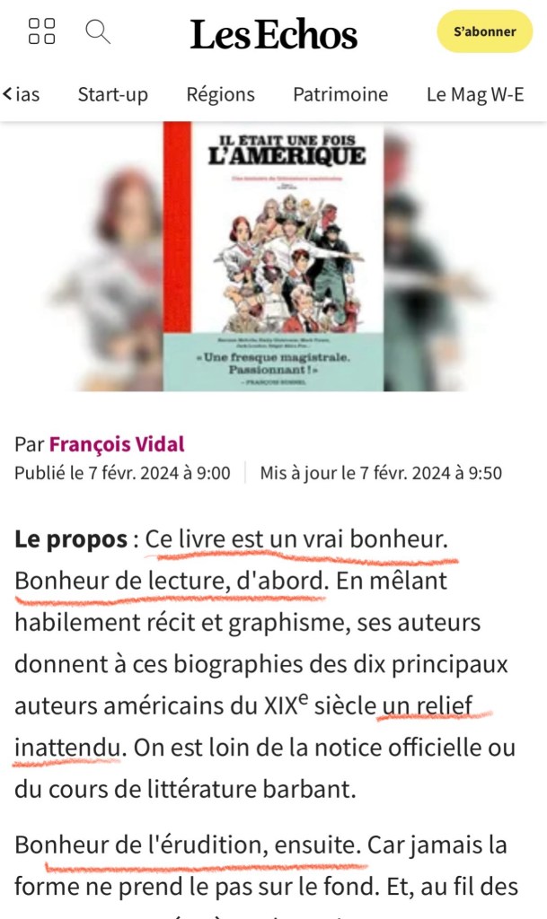 François Vidal, directeur de la rédaction des Échos, a visiblement bien aimé le dernier ouvrage de Catherine sur la littérature américaine.