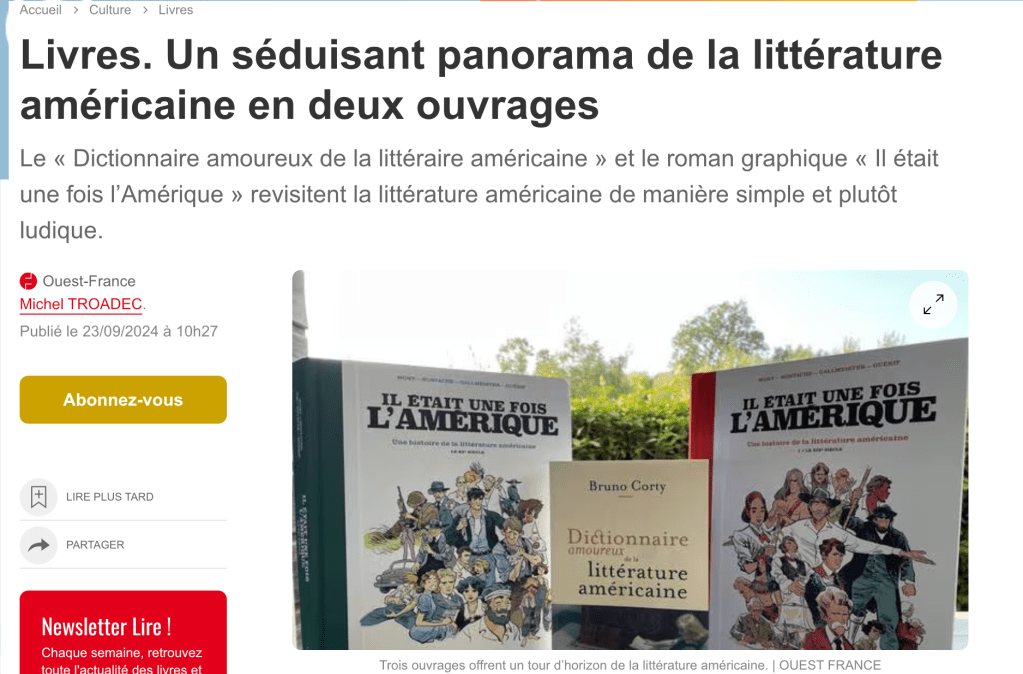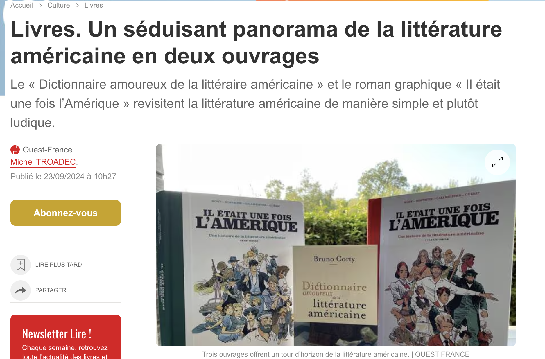 - Ouest-France (23/09/2024) : « Un séduisant panorama de la littérature américaine en deux ouvrages ». ttps://www.ouest-france.fr/culture/livres/livres-un-seduisant-panorama-de-la-litterature-americaine-en-deux-ouvrages-c0165c4c-75dd-11ef-8ac3-f7eb9db10673